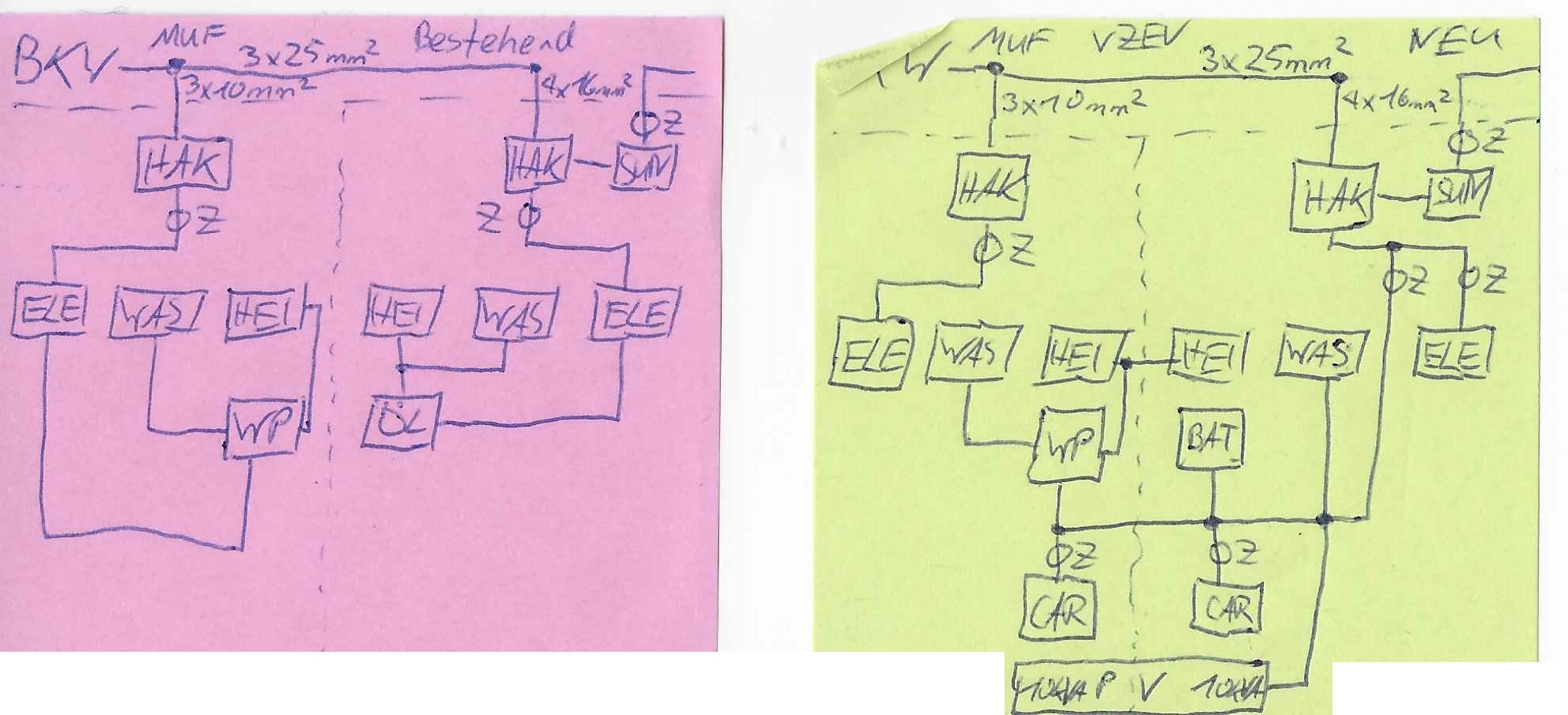 Ich habe das mal alles prinzipiell für den Bisherigen Ausbau und als Variante vZEV im Bild im Anhang gezeichnet (Z steht für Zähler (Privat oder BKW)).